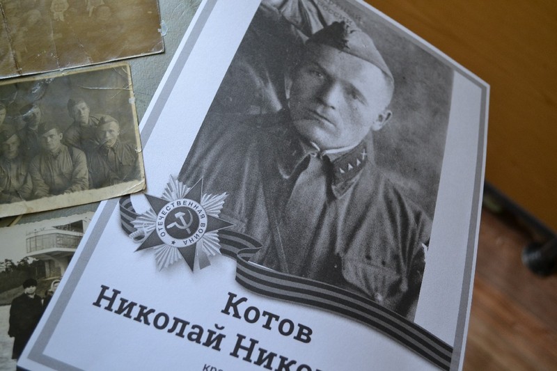 Сотрудник МФЦ Вера Филаткина смогла из единственной уцелевшей коллективной фронтовой фотографии, хранившейся в семейном альбоме прончан Котовых, сделать портрет Николая Николаевича Котова.