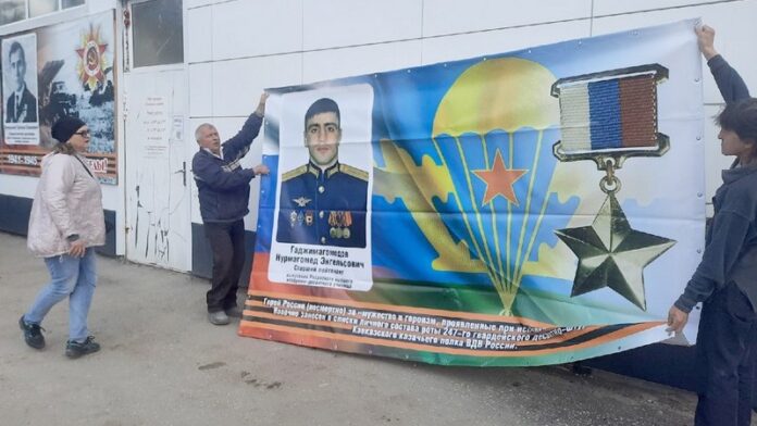 29 апреля на стене Памяти, которую новомичуринский предприниматель Виктор Чегоряев восемь лет назад организовал на стене здания, принадлежащего его семье, установили еще один баннер – в честь Героя России лейтенанта Нурмагомеда Гаджимагомедова. Это выпускник Рязанского училища ВДВ, погибший в первые дни спецоперации на Украине.