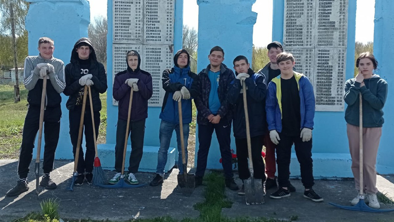 5 мая волонтеры Новомичуринского многоотраслевого техникума из отряда «Доброволец» привели в порядок территорию памятника в селе Булычево. Десять добровольцев во главе со своим руководителем Татьяной Пикула вырубали здесь прошлогоднюю траву.