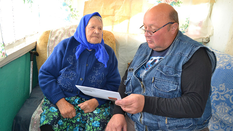 Мария Петровна рассказала гостям, что сейчас нуждается в тщательном уходе и заботе. Из дома она сейчас почти не выходит. Сноха и внуки живут далеко, а сыновья пенсионерки умерли. С бытовыми проблемами ей помогает местная соцработница Ольга Иконникова.