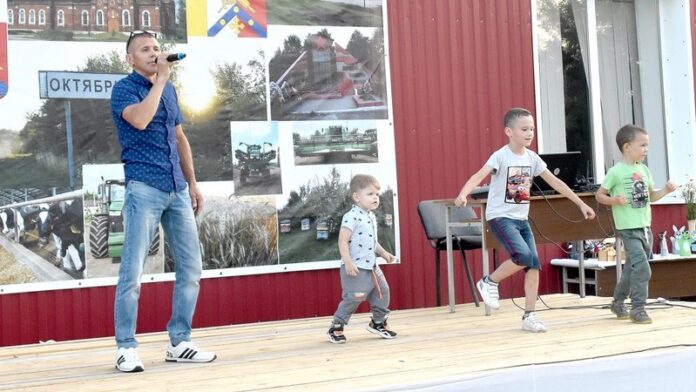 Погода позволила провести вечер на улице, у местного очага культуры. Заведующая ДК Татьяна Серегина позаботилась обо всех: чтобы взрослым можно было удобно сидеть и слушать торжественные речи. А детям – было бы где танцевать под песни местных и пронских артистов. А если проголодался – добро пожаловать к столу, где из угощений и узбекская шурпа, и русский квас. Немудрено: в Октябрьском живут люди десяти национальностей. 1540 человек.