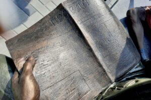 24 августа в новомичуринском парке 40-летия Победы на улице Комсомольской рязанский скульптор Олег Седов установил свою скульптуру «Девочка и ветеран». Интеллигентный мужчина – судя по орденским планкам на пиджаке – воевавший, присел в парке на скамеечку, читает газету «Правда». Рядом – маленькая девочка с букетом васильков. А на первой полосе «Правды» сообщение: в Новомичуринске на ГРЭС продолжаются испытания.