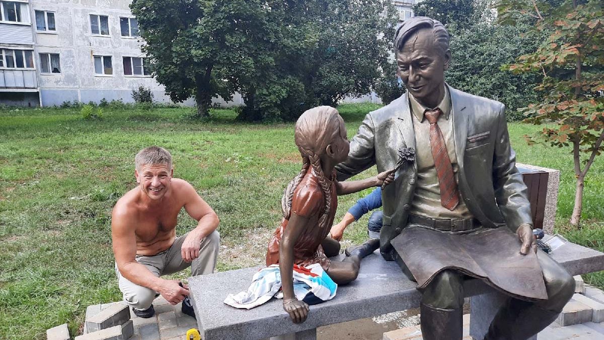 «Девочка и ветеран» – это уже третья работа Олега Седова, сделанная для Новомичуринска. Памятник Мичурину и памятник «Героям войны» – тоже его работы.