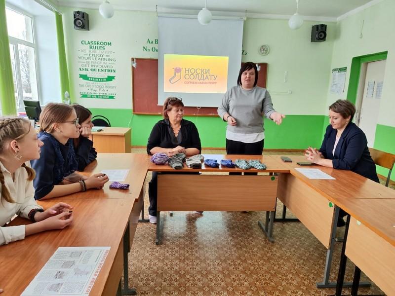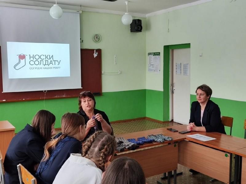 После уроков 17 ноября восьмиклассники Тырновской школы имени Лаврентия Загоскина пришли на мастер-класс к Людмиле Ястремской, которая учила вязать их теплые носки для солдат. Женщина работает в школе, а вяжет дома. Она уже передала для бойцов и мобилизованных теплые носки.