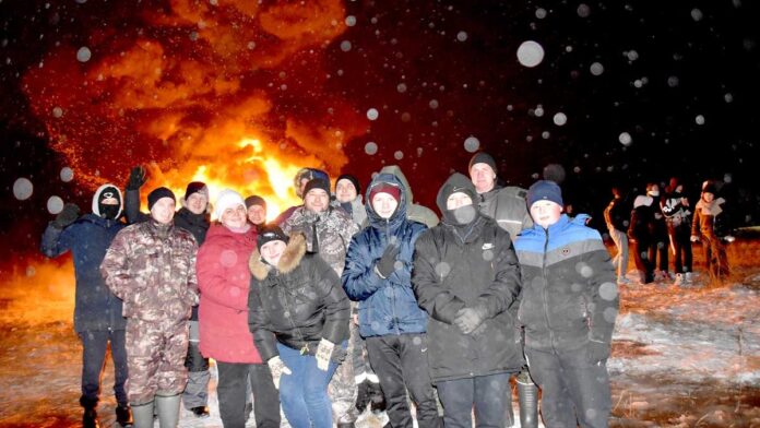Ровно в полночь 7 января в поле на въезде в поселок Орловский молодые мужчины – Артем Голиков, Виталий Варламов, Алексей Онисенко, Владимир Макаров, Александр Балабошин и Иван Ерыгин, – зажгли большой костер, у которого собрался весь поселок.