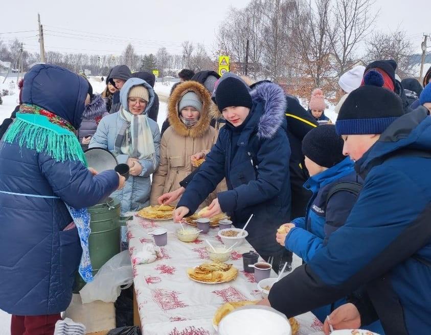 Для младших школьников культработник Марина Головченко вместе с помощниками Кирой Шрефер, Данилой Иконниковым, Дмитрием Прошиным и Георгием Демёхиным на площадке культурно-спортивного центра организовала веселые подвижные игры. После игр ребята с аппетитом ели гречневую кашу с мясом, приготовленную прямо на костре, и уплетали блины с чаем.