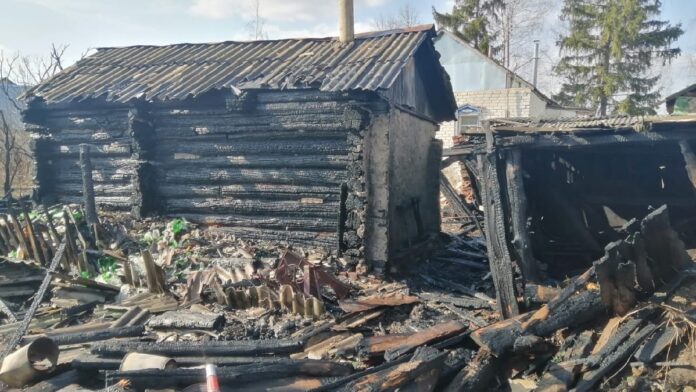 Дом уцелел. Деревянный сарай сгорел, а баню огонь повредил частично.