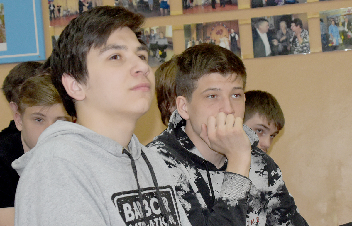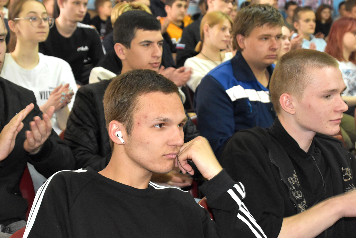 «Сегодня в зале более 160 наших студентов. Прошу заметить: никто никого не принуждал, – отмечает директор техникума Олег Немых. – И я горжусь своими ребятами. Для них наши сегодняшние гости – герои. И это видно по тому, как они слушают, какие задают вопросы, какой интерес вызвало не только у мальчиков, но и у девочек оружие. И я совсем не удивлен. Наши третьекурсники варили для участников СВО железные печки, плели маскировочные сетки. Дружно собирали на передовую посылки и писали письма солдатам, среди которых есть и наши выпускники».