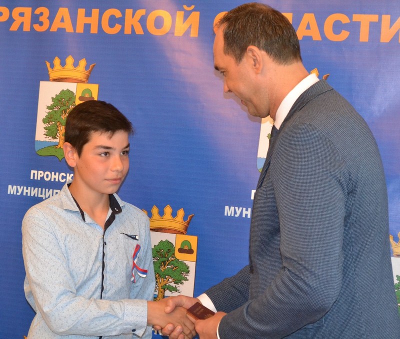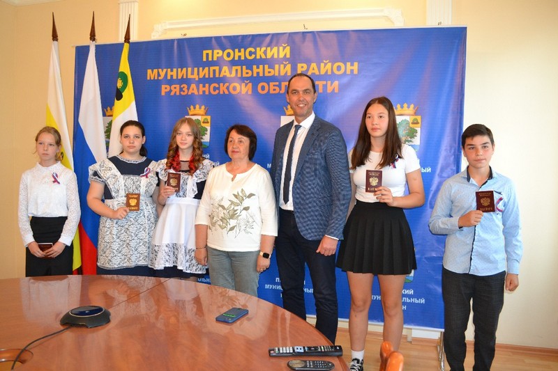 В преддверии Дня России, 9 июня, глава администрации Пронского района Александр Шаститко в торжественной обстановке вручил паспорта пяти ученикам из разных школ.