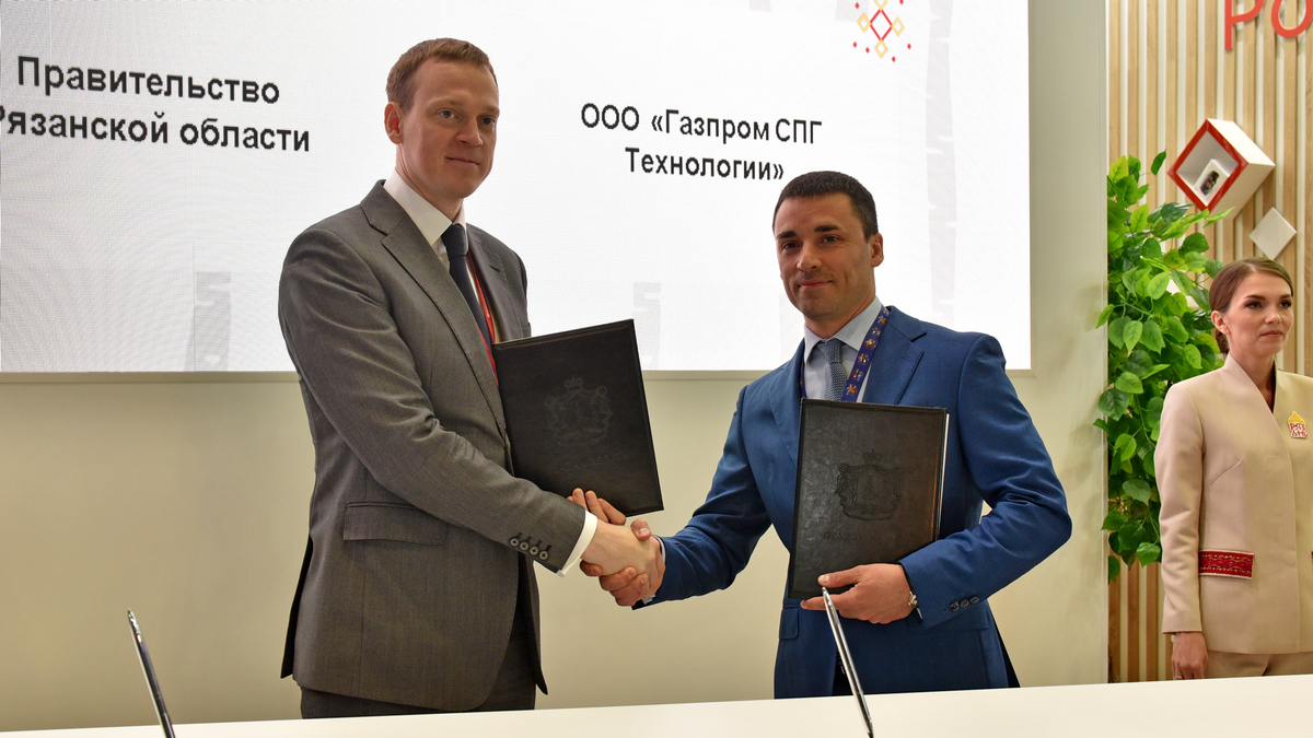 16 июня на ПМЭФ-2023 заключили соглашение о сотрудничестве между Правительством Рязанской области и ООО «Газпром СПГ технологии». Документ подписали Губернатор Павел Малков и учредитель компании Алексей Кахидзе.
