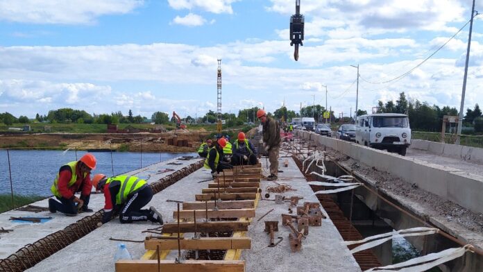 В Пронске продолжается капитальный ремонт моста через Проню по нацпроекту «Безопасные качественные дороги». С середины июля подрядчики из ООО «КМК» выполняют укладку несущих балок пролетных строений моста. При работе крана, который весит 750 тонн со стрелой в 105 метров, на полчаса по три-четыре раза в день закрывают проезд через мост.