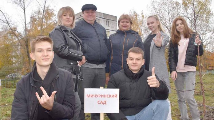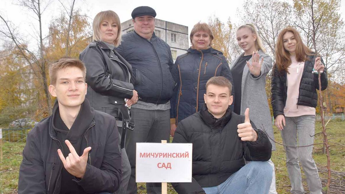 18 октября перед школой № 2 в Новомичуринске сажали «Мичуринский сад». 30 яблонь сортов «синап», «успенское», «пинова» привез Егор Самусенко, директор «Дирекции по реализации программы развития города Мичуринска как наукограда Российской Федерации».
