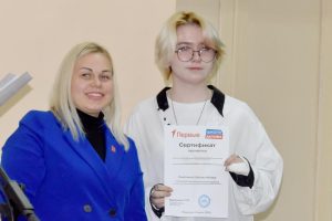Татьяна Шевлякова, председатель местного отделения «Движения первых» в Пронском районе, поздравила ребят: теперь в районной организации «Первых» более трехсот человек. Татьяна Андреевна вручила каждому сертификат участника школы районного актива, который собиралась в техникуме накануне.