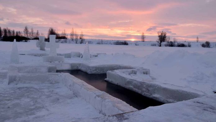 17 января тырновский предприниматель Сергей Тиков и его товарищи Владимир Будаев, Алексей Тиков, Михаил Чистяков, Вячеслав Чуриков вырубили прорубь на пруду Радбиж и начали устанавливать рядом с ней огромную палатку: после крещенского купания людям будет где укрыться от мороза и ветра.