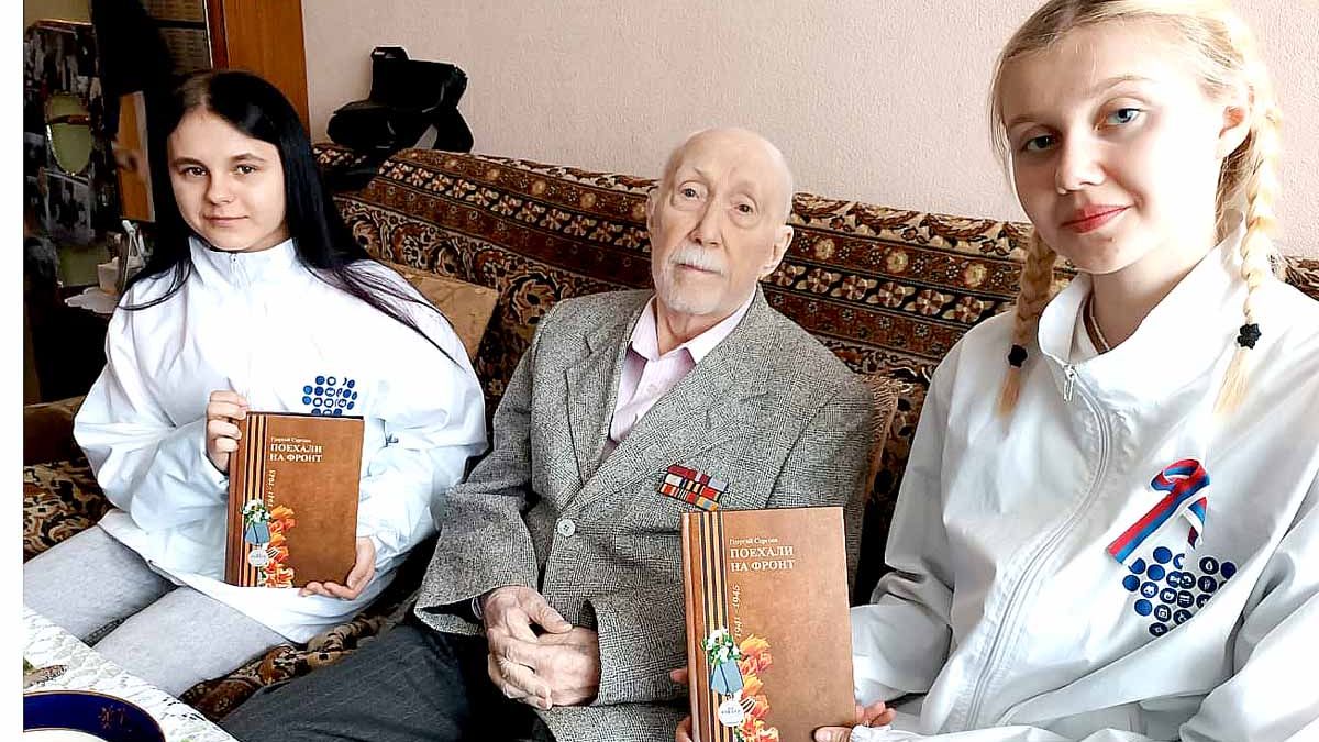 Юные гостьи ушли от Сергеевых с подарком – школьницам Еве и Ангелине Георгий Леонидович подарил одну из своих книг. Повесть «Поехали на фронт» – о путях-дорогах фронтовых, о наблюдениях юного солдата Жоры Сергеева, который, приписав себе год, ушел на войну 17-летним мальчишкой. Всего у Сергеева издано четыре книги.
