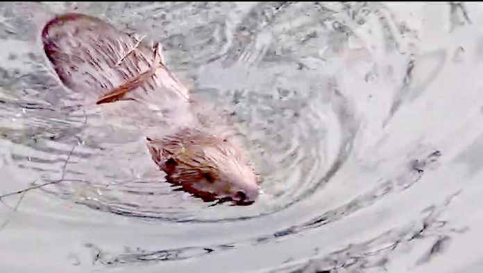 17 апреля новомичуринец снял на видео двух бобров, плавающих возле дач в ледяной воде так называемого зеленого озера.