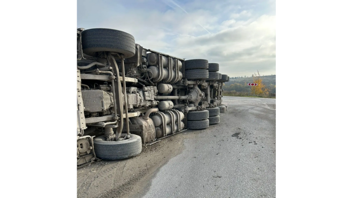 В 9 утра 18 октября на дороге от Береговой Погореловки к Пронску на бок завалилась груженая щебнем «Скания».