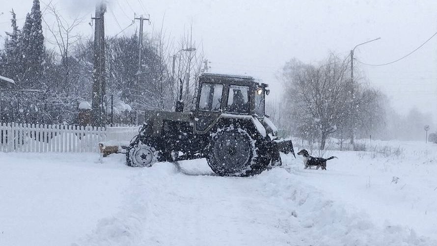 Кисьву, Денисово, Погореловку и Большое Село спасают от снежного плена пронские трактористы Павел Черников и Алексей Прошин.